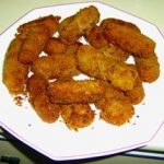 – Batimos los huevos,las rebozamos en ellos y luego las pasamos por pan rallado y las freímos en aceite bien caliente.