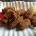Yo hago unas bolas y luego más alargadas las voy posando en un tupper y en el momento de utilizar las frío en aceite muy caliente las dejo en papel absorbente y luego a emplatar adornando con mermelada de pimientos .