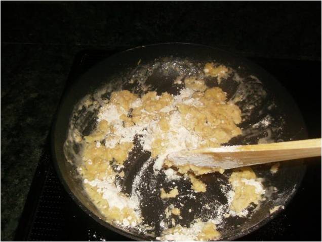 Añadimos 2 cucharadas de harina y la rehogamos un poco para que pierda el sabor a cruda.