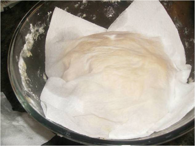 La tapamos con un paño de cocina o con papel pero húmedo, y la dejamos reposar 1 hora en un sitio templado y sin corrientes