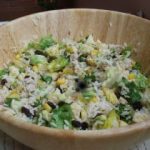 Ensalada templada de langostinos con jamón ibérico, verduras en tempura y salsa romesco