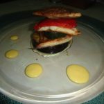 Se calienta el horno a unos 200ºC, en una fuente se dispone un pimiento rojo, una berenjena, una cebolleta mediana con un chorreón de aceite por lo alto, se mete en el horno que bajaremos hasta los 180º C, cuando pasan unos 20 minutos se añade un tomate maduro mediano entero y se le da la vuelta a las primeras hortalizas para que se vayan haciendo por igual, cuando llevan más o menos 1 hora miramos para ver si ya están hechas, si no lo están volvemos a darles una vuelta, pues deben quedar muy tiernas, una vez que estén bien hechas se sacan, el pimiento y la berenjena se envuelven en papel de periódico por separado por una hora más o menos, esto facilitará la operación de pelado. Cuando se han templado se pelan con cuidado la berenjena, el tomate y el pimiento, y le quitamos las pepitas también, para esto es útil que tengamos un bol con agua cercano para ir limpiándonos las manos, pues los trozos de piel se suelen quedar pegados a los dedos; dispondremos el tomate asado cortado en rodajas, a su lado el pimiento en tiras, la berenjena también en tiras y la cebolleta en juliana, le pondremos por encima un diente de ajo picado, un chorreón de buen vinagre de Jerez, un chorro de buen aceite de oliva vrgen extra y un un poco de sal (en este caso sal rosa del Himalaya). Se puede comer templada o fria. También podemos hacer las verduras en la parrilla, o la barbacoa.