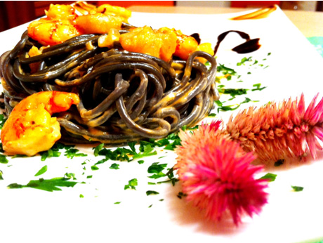 ESPAGUETIS NERO DI MARE A LA SALSA DE RAPE Y CARABINEROS