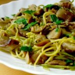 Zarajos italianos en salsa de setas con toques orientales..(espaguetis )
