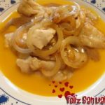 En una sartén ponemos la cebolla picadita y sofreimos hasta que esté bien hecha, en ese momento echamos el bacon.