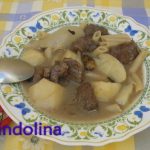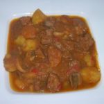 Galicia, es una comunidad autónoma en la que hace muchísimos años se produce carne de vacuno. Los terneros se sacrifican generalmente con menos de 10 meses de edad y su carne destaca por su color rosa claro o rojo suave, que una vez madurada y bien cocinada, es una carne de extraordinaria jugosidad que hace las delicias de los paladares más exigentes.Este estofado o guiso de ternera, lo que si requiere a la hora de degustarlo, es pan para la mojar en la salsita que está de vicio.