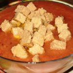 Trituramos todos los ingredientes a la medida que deseemos, ponemos en un cazo y removiendo sin cesar dejamos que tome cuerpo, mas o menos 30 minutos.