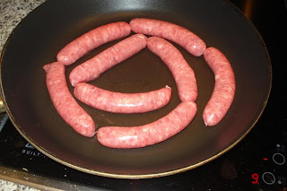 En una sartén bien caliente, empezar a cocinar las longanizas pinchadas.