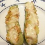 Calabacines al horno, con salmón y mozzarella