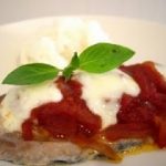 Filetes de caballa al horno con tomate, albahaca y mozzarella