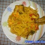 6°) A los 10 min. disponemos las gambas, las galeras y el pimiento.