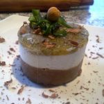 Tartita de chocolate, avellana, yogurt y calabacinos