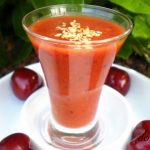 Servir bien frío acompañado de una o varias cerezas enteras para adornar, bien como una sopa fría o como aperitivo.