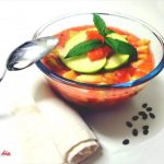 * Picamos el pimiento verde, la cebolleta y el ajo, no hace falta que lo hagamos muy pequeños porque luego lo vamos a triturar con la batidora. Batimos hasta conseguir que quede fina.
