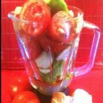 Cortamos los tomates a la mitad y ponemos en Batidora o