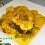 Cubrimos justo de agua o caldo de verduras, salamos y dejamos cocer lentamente. Mientras se cuecen las patatas, hacemos la picada con el azafrán, los ajos, el perejil y las almendras, en un mortero. Añadimos al guiso.