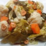 Cuando el tomate se haya deshecho formando una salsa, ponemos una cucharadita de pimentón dulce, removemos bien y antes de que se nos queme le añadimos el vino blanco.Dejamos evaporar un poco y cubrimos bien con auga. Le ponemos una hoja de laurel, cuando rompa a hervir tapamos y la dejamos que se vaya cociendo a fuego mínimo.