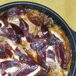 Limpiamos bien los chocos (sepias) y los cortamos en torzos regulares de tamaño mediano (en una proporción abundante respecto a las habas), por otra parte picamos finamente cebolla y ajo, los ponemos a pochar en aceite de oliva, cuando empiece a dorarse la cebolla añadiremos los chocos con un poco de sal y refreiremos, cuando se haya reducido el agua que sueltan, se añade una hoja de laurel y un poco de pimentón dulce, se refrie con cuidado de que no llegue a quemarse y se añade enseguida una copita de vino blanco (en este caso manzanilla de Sanlúcar), se espera a que se reduzca el alcohol y se añaden las habas (en este caso habas baby congeladas, pero el plato original es con habas grandes incluso con las vainas troceadas), se le pica un poco de menta (esta es una sugerencia de mi amigo Jorge), se corrije de sal y pimienta y se cubre de agua o fumet de pescado, y se deja cocer a fuego medio hasa que reduzca el caldo y los ingredientes estén tiernos.