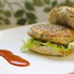 9. Una vez hecha la hamburguesa, partimos el pan por la mitad.