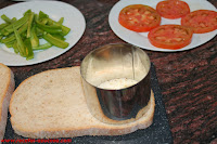 Con ayuda de nuestro molde sacaremos de cada rebanada de pan dos panecillos, reservamos.