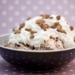 Desmoldamos y ponemos en el vaso triturando en velocidad 4 hasta que este mantecoso. Añadimos pepitas de chocolate y degustamos.