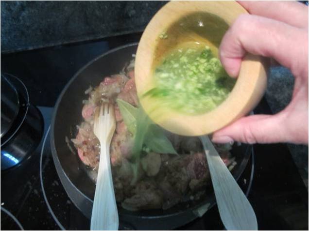 Se lo echamos al hígado y lo dejamos cocer a fuego suave unos 10 minutos.