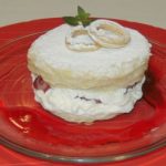 - Con una manga pastelera con boquilla rizada adornamos la tapa y le colocamos dos láminas de fresa .