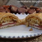 Cerramos como un bocadillo el hojaldre, lo pintamos con huevo batido y adornamos con unos tomate cherry. Horneamos hasta que se vea bien doradito el hojaldre a 180º.