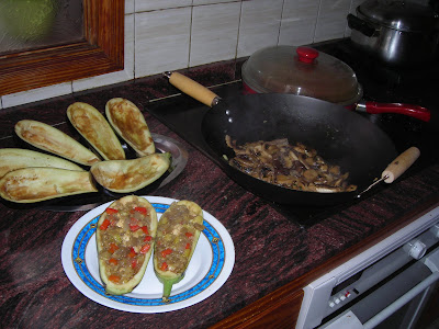 Mientras rellenamos las berenjenas vamos haciendo los champiñones y las setas.