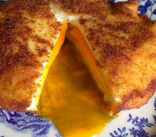 Rebozar en harina, huevo y pan rallado y freir con cuidado, dándoles la vuelta para dorar por los dos lados.