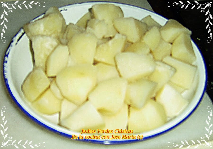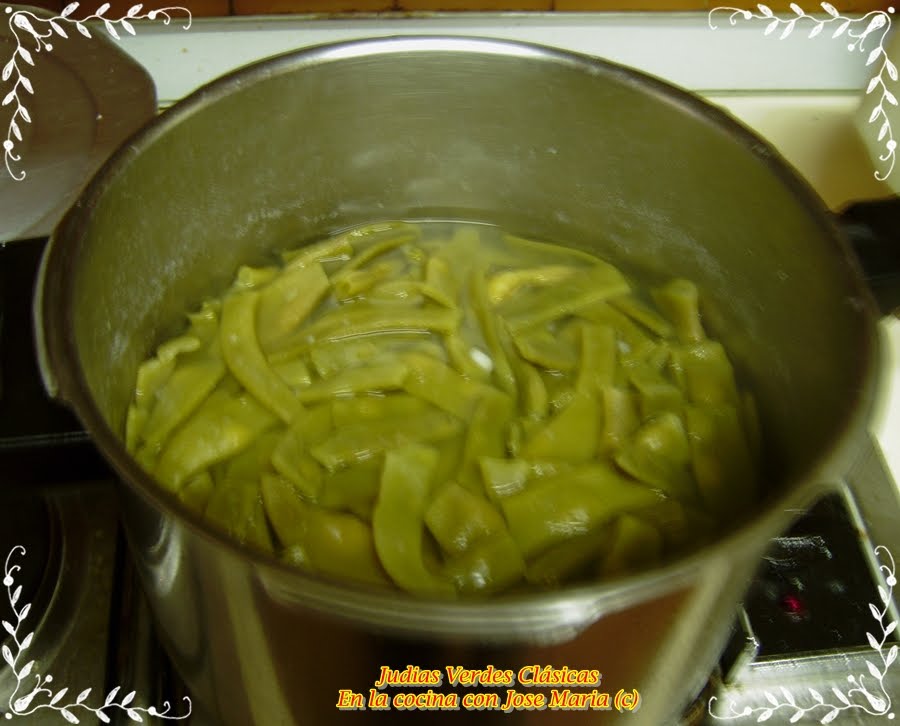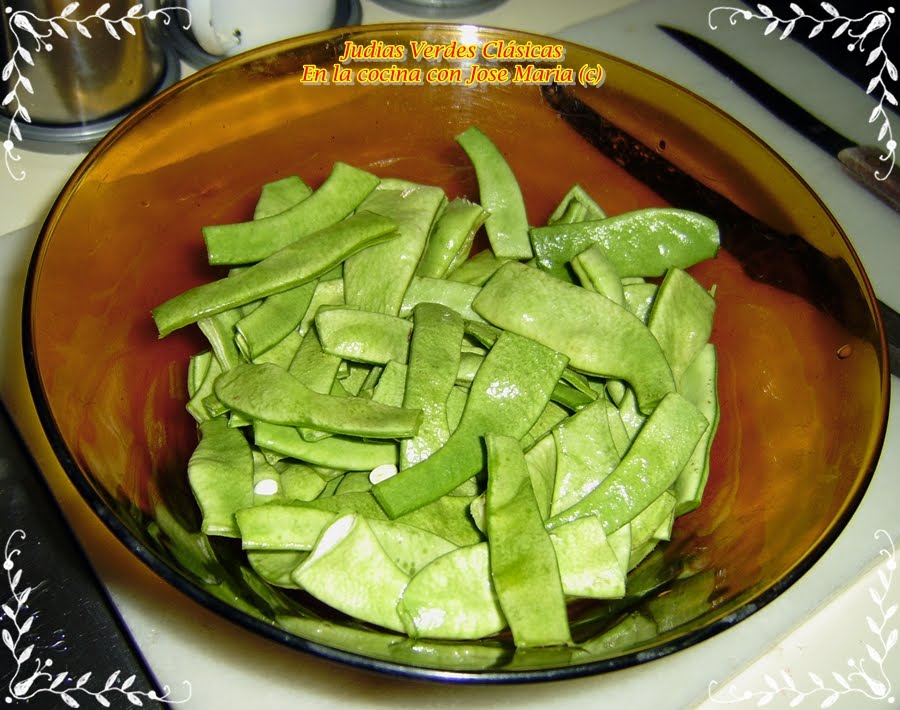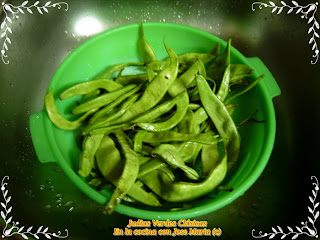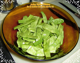 Lavamos las judías,les quitamos las puntas a las vainas.