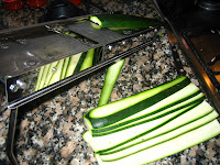 Mientras preparé las láminas de calabacín para utilizarlas como placas con mi nueva mandolina je, je.