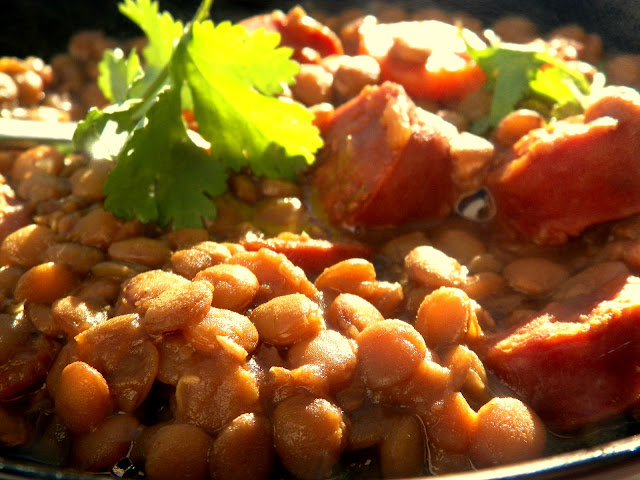 La lenteja es una de las legumbres mas consumida en el mundo entero, rica en proteínas, minerales e hidratos de carbono, ha sido uno de los principales alimentos en la dieta de la antigua Roma y hay además muchísimas menciones bíblicas de ellas. Dietéticamente tienen un gran valor nutricional, de ahí que su consumo sea recomendado en cualquier dieta completa. No dudes en comerlas, son sanísimas y es un alimento que posee todas las propiedades básicas.Tienes muchas recetas para prepararlas, desde las clásicas de cuchara a las más novedosas de ensaladas y cremas. Hoy la preparé con chorizo y quedó de maravilla!!!
