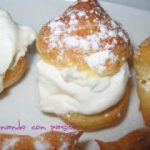 Yo no soy de complicarme con postres muy elaborados … pero hoy estaba caprichosa y quería experimentar con la pasta choux. Es la primera vez que la hago y no me he quedado muy satisfecha con el resultado. Estar, están riquísimas, pero al no tener manga pastelera, la forma y el relleno ha quedado muy rústico … también abrí el horno un poco antes (craso error) y me bajaron un poco … una excusa para repetir y perfeccionar la receta.