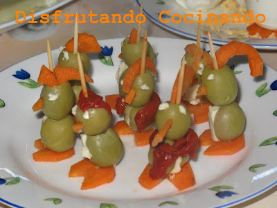 Si se desea se puede añadir pimiento rojo entre las dos aceitunas.