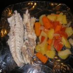 Lubina rellena de Jamón Serrano y guarnición de Patatas Fritas