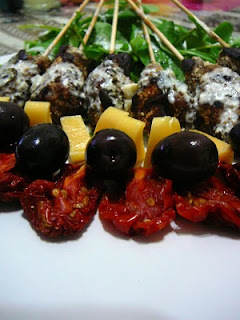 Yo los acompañé con abundantes rúcalas a las que también condimenté por arriba con la salsa y una “onda” mediterránea de tomates secos previamente hidratados con agua, algunas aceitunas negra y pedacitos de queso Mar del Plata para compartir. Darse un gusto con un rico pan árabe y todos estos ingredientes dentro…mmm….que rico!