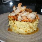 He optado esta vez por una Marmitako de Patatas con Cachón y Langostinos, prescindo de la tinta (utilizado con frecuencia en estos platos de cachón) y opto por un toque de sofisticación agregándole unos langostinos para darle así un carácter de plato de «día festivo».