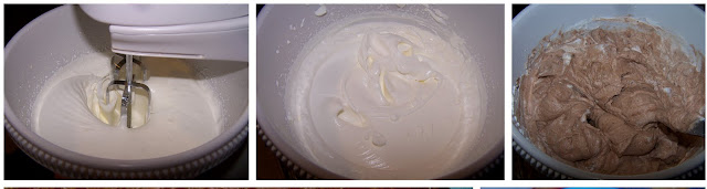 Montar la nata hasta que forme picos y mezclar con una espátula y mucho cuidado la mezcla del chocolate dando toques envolventes para que coja aire.