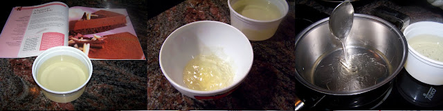 Realizaremos la Mousse poniendo a remojar las hojas de gelatina en un poquito de agua fría.Ponemos el agua a hervir junto con la glucosa hasta que llegue a ebullición,despues dejaremos templar.