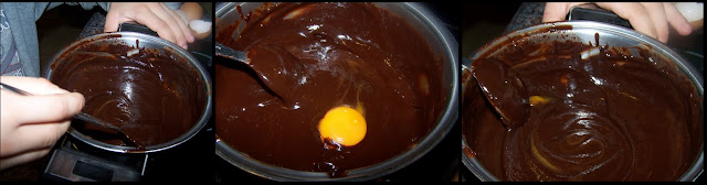 Cuando la mezcla de chocolate se haya enfriado añadir las yemas de huevo si dejar de remover.