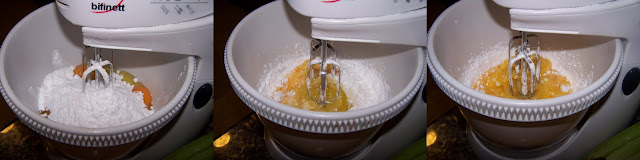 Precalentar el horno a 160 grados.Batir los huevos con el azucar hasta que adquieran una consistencia cremosa.