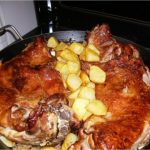Troceamos en cachelos las patatas, las ponemos a cocer con el cordero cuando este casi cocido.