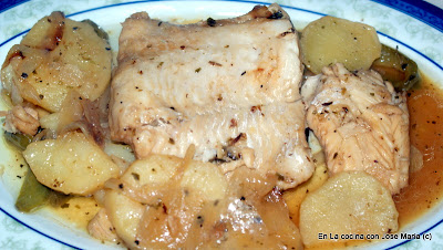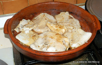 4.- Una vez que tenemos los vegetales casi casi a punto, escurrimos el aceite y con ayuda de una espumadera apartamos a un plato, en este momento echamos los filetes de merluza con una cucharadita de aceite, salamos y especiamos con las especias , y marcamos el pescado.