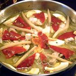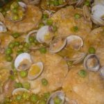 – Las almejas habrán estado en agua con sal toda la noche, asi que se lavaran y se cocinaran al vapor con un chorrito de vino blanco hasta que se abran. Reservar.