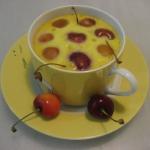 Este año hemos pasado una calurosa mañana del fin de semana pelando un sólo cerezo, al tiempo que oíamos los falsos disparos y falsos graznidos de ave rapaz que ahuyentan a los pájaros. La maduración ha llegado con un pequeño retraso al alfoz de Toro, las cerezas son hermosas por gordas, y como las recuerdo del año anterior: acidas y después dulces, deliciosas. La cosecha inundó el suelo de la habitación donde escribo esta receta, que parecía un mar rojo de cerezas, hasta que reparte y reparte, mermelada, clafoutís, selva negra, sorbete, bizcocho, y cerezas en el desayuno, comida y cena, lo llevaran a su fin.