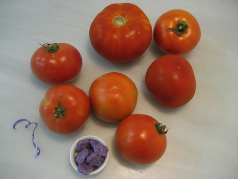 En agosto empiezan los huertos a dar tomates en abundancia, hecha la inicial probatura, consumidos los primeros, y ya invitados a merendar primos y cuñados, y aunque la cosecha no ha sido muy buena me llegan los generosos obsequios de los compañer@s, Charo con unos inmensos y maduros e Isabel con otros de colores. Ensaladas y sofritos, pero también mermelada y granizado. Ambas harán esta mermelada.