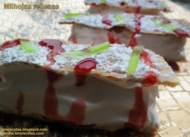 Hola a todos, por fin estoy de vuelta a mi querido blog. No había podido volver ya que he estado con familia todos estos días y ni un momento para compartir las recetas y visitar vuestros blogs, es más, tengo ésta de milhojas que se había quedado rezagada de tantos días de jaleo.. Por supuesto deciros, que os deseo un feliz año y todo lo mejor… Este postre que doy a continuación es fácil y rico, prometo que en los próximos días publicaré ensaladas y platos ligeros que ya apetece y mucho…