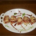 Solomillo de cerdo relleno de sobrasada con salsa de queso