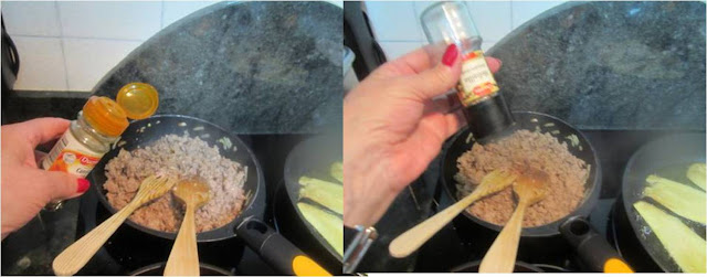 Cuando la carne este casi frita le añadimos un poquito de orégano o media cucharadita pequeña de cominos machacados y salamos un poco.